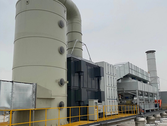 高壓靜電裝置-干式過濾-吸脫附系統(tǒng)-催化燃燒-升溫節(jié)能系統(tǒng)-風機-控制系統(tǒng)
